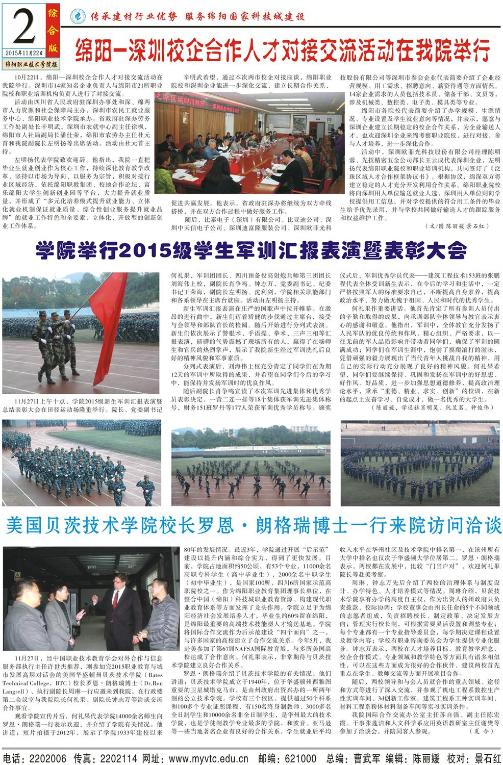 绵阳职业技术学院2015年第11期(总第68期)第二版