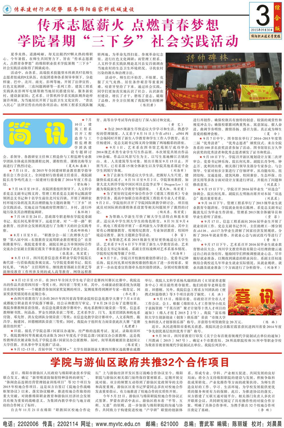 绵阳职业技术学院2015年第9期(总第66期)第三版