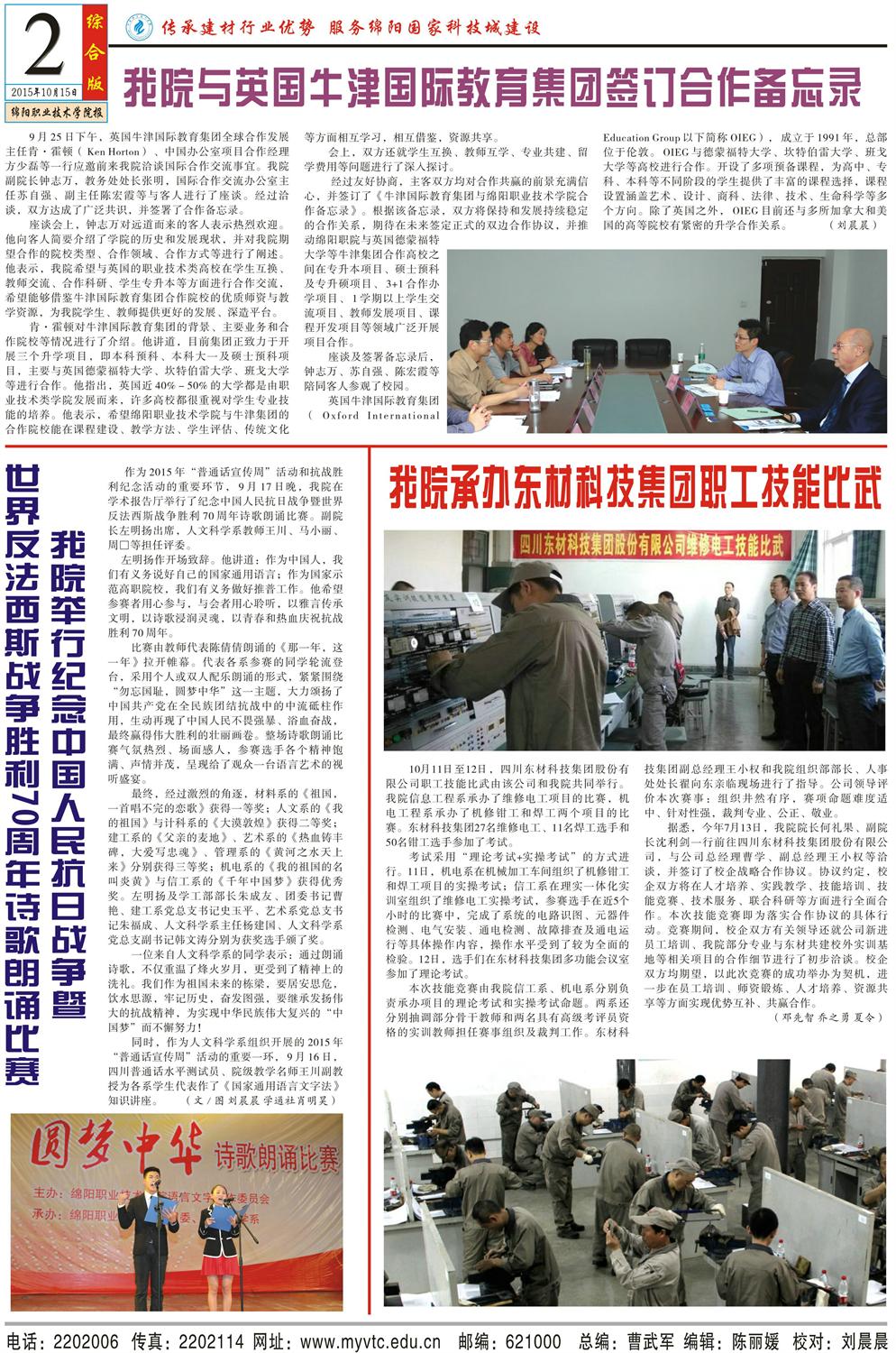 绵阳职业技术学院2015年第10期(总第67期)第二版
