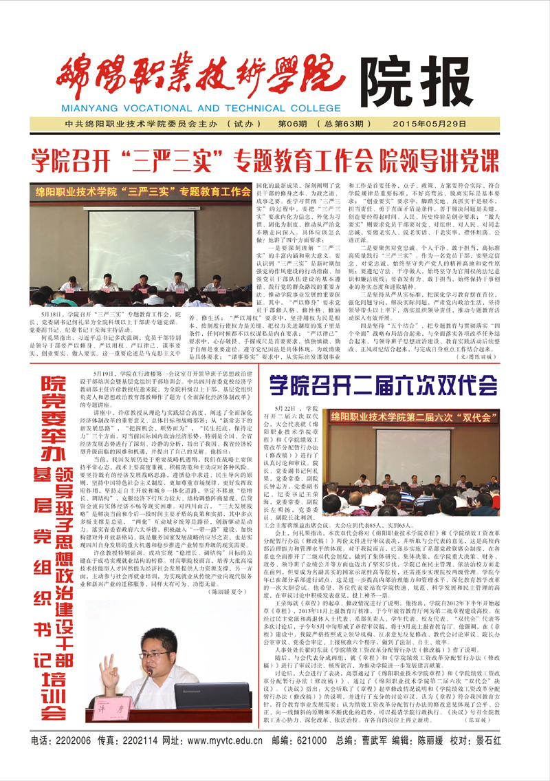 绵阳职业技术学院2015年第6期(总第63期)第一版